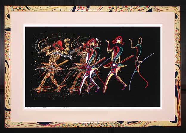 | NOTE | Original monotype done in a mixed technique with watercolour on hand made linen and canvas paper Origina frame, hand made, in pen ink and gold leaf by artist> | ||