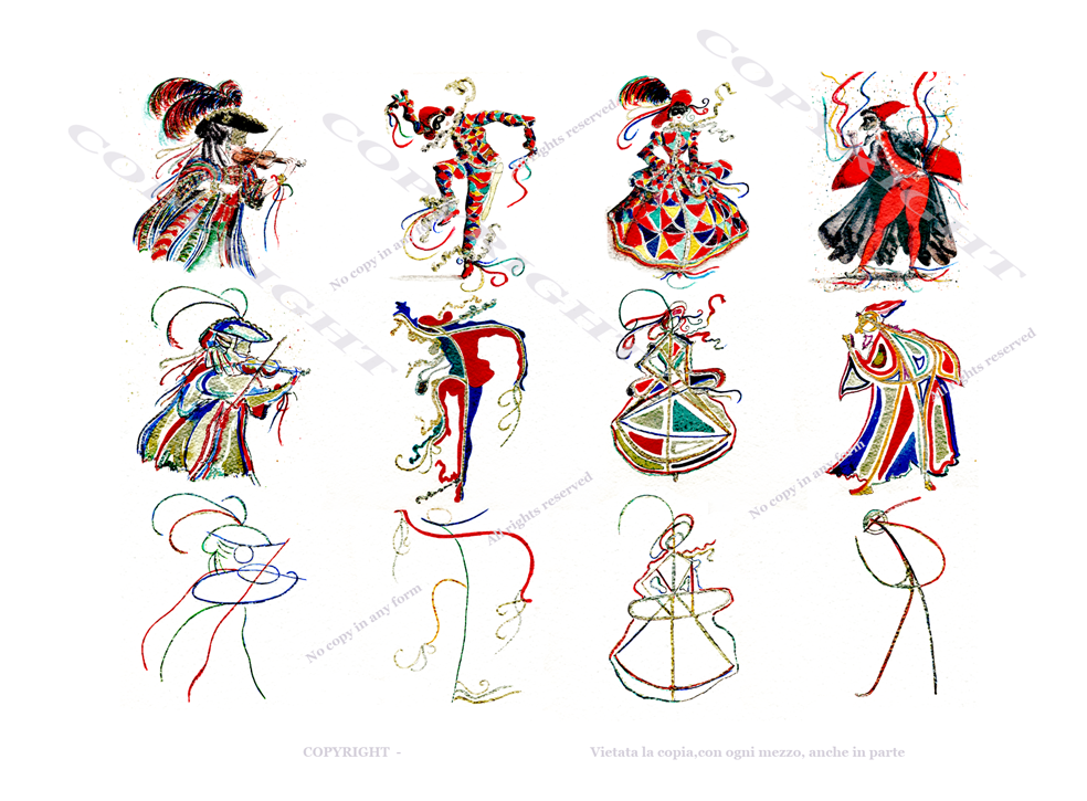 | TITLE | Astrazione di 4 maschere veneziane | CODE | MON.ASTMASK 47 |