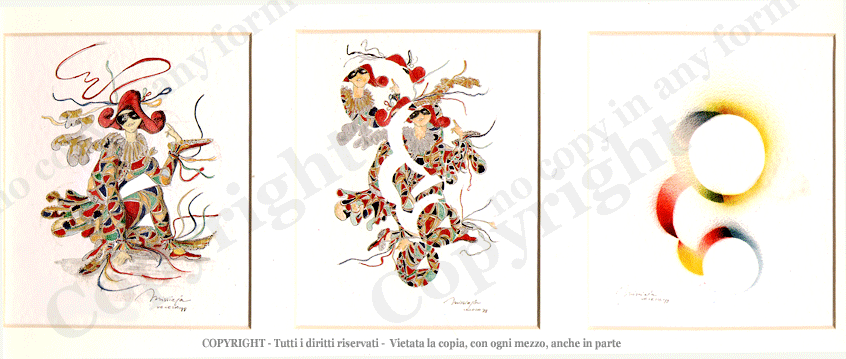 | NOTE | Original pictures bifore in pencil, ofter in pen ink and waterlolour on hamp, linen and canvas paper, executed completely by hand, since 1988 Multicolor frame by artist | ||