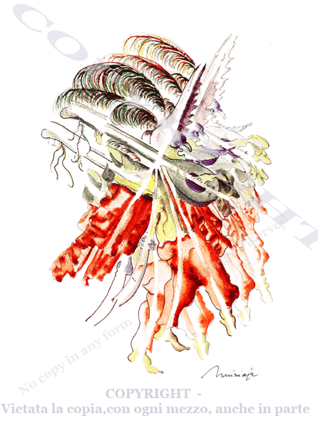 | NOTE | Original monotype done in a mixed technique with watercolour on hand made paper Gold and red frame by artist | ||