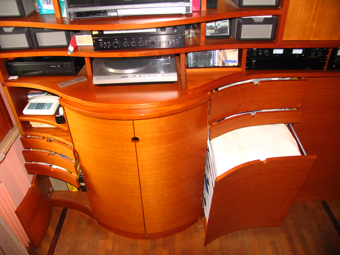 Mobile polifunzionale per soggiorno: Particolare della scrivania chiusa e dei contenitori