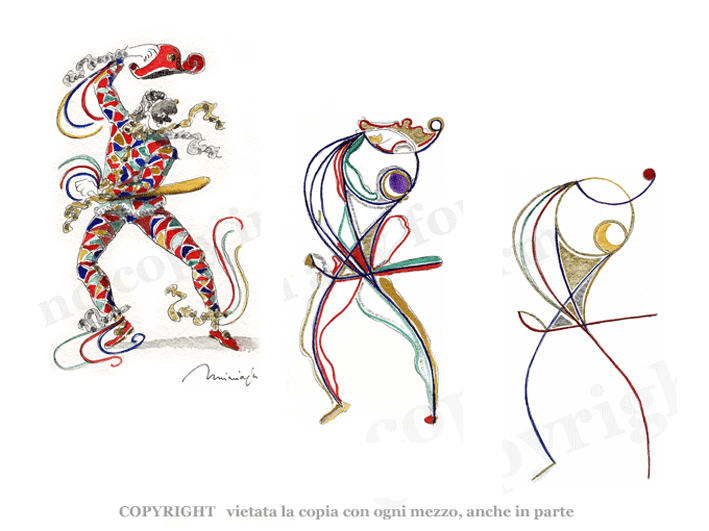 | NOTE | Original pictures bifore in pencil, ofter in pen ink and waterlolour on hamp, linen and canvas paper, executed completely by hand, worked in various years Gold and red frame by artist | ||