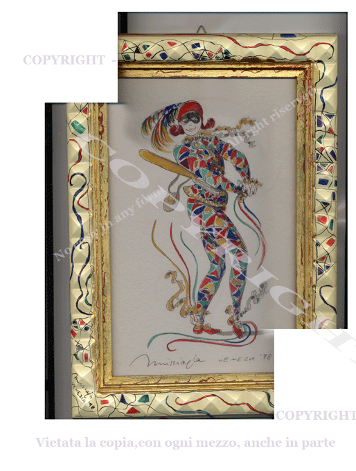 | NOTE | Original pictures bifore in pencil, ofter in pen ink and waterlolour on hamp, linen and canvas paper, executed completely by hand Original Gold leaf frame by artist | ||