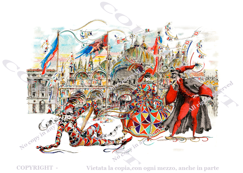 | SECTION | Masks in Venice | TECHNIQUE | Original monotype mixed technique |