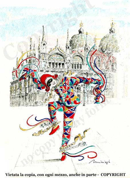 Bauta veneziana e Colombina al ponte dei Sospiri |