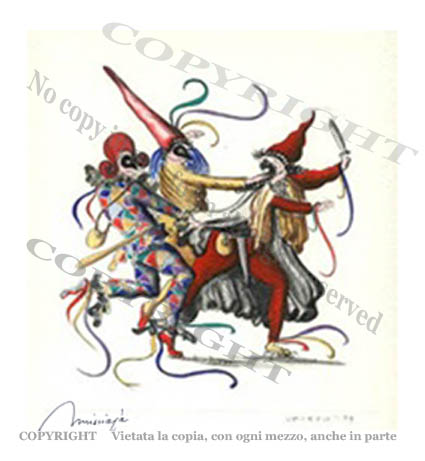 La rissa tra Pantalone Pulcinella e Arlecchino